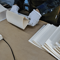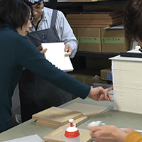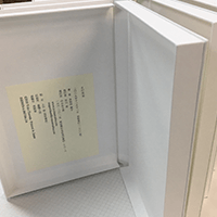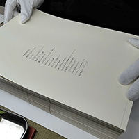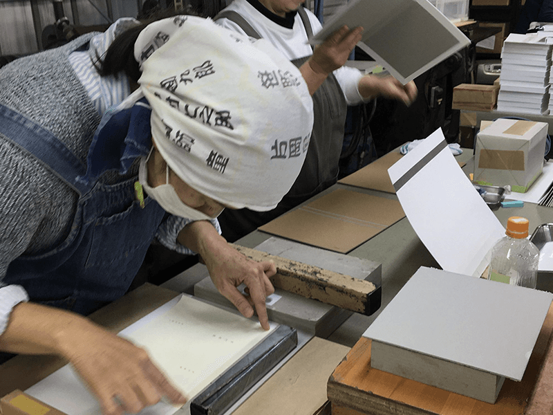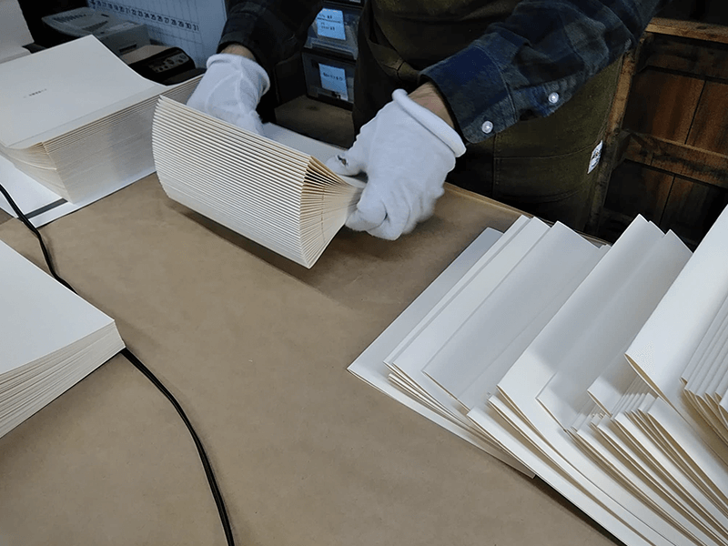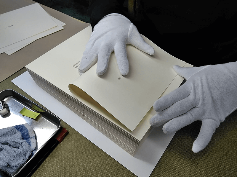 私たちは製本屋ですけれど、今回、本に綴じるというよりは箱から含めて本であるという考え方で、17枚の紙を収めるこの形は、私は本当に素敵だなと思いました。今こうして手にして見て、感慨深く思っております。