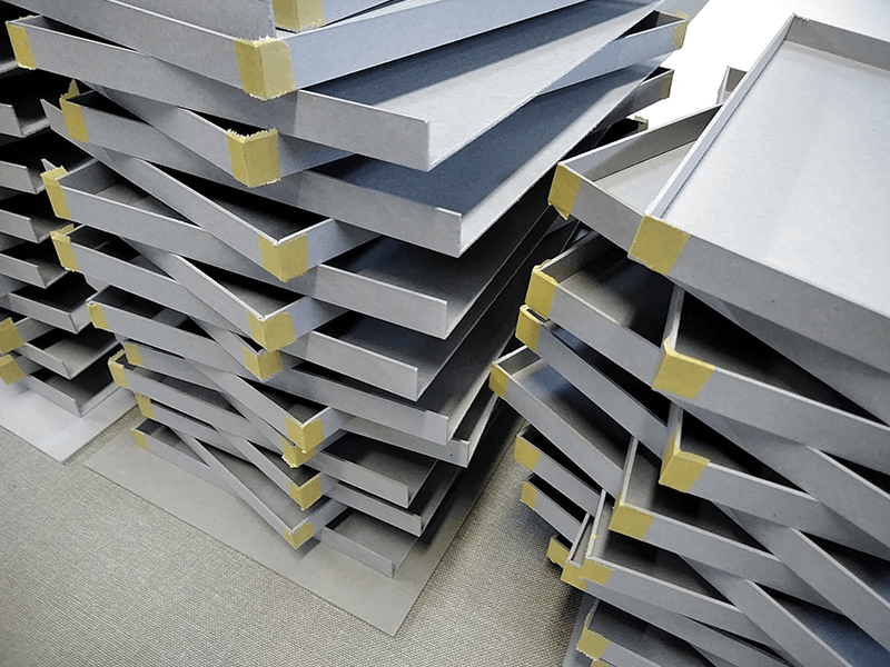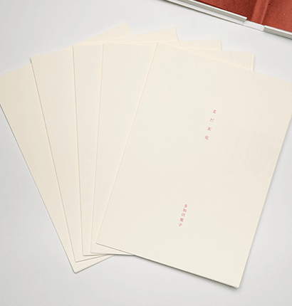 名刺や絵葉書やB4のカードのようなものならば可能だと仰っていたので、詩を綴じないまま箱に収めたらどうかと閃きました。