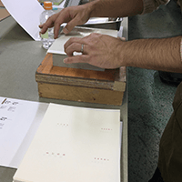 活版印刷を担当した、嘉瑞工房・高岡昌生さんと、箱製作のみならず全工程をサポートしてくれた、美篶堂・上島明子さんのお二人に完成した書籍を初めて披露しながら、ゆめある舎・谷川恵がお話をうかがいました。