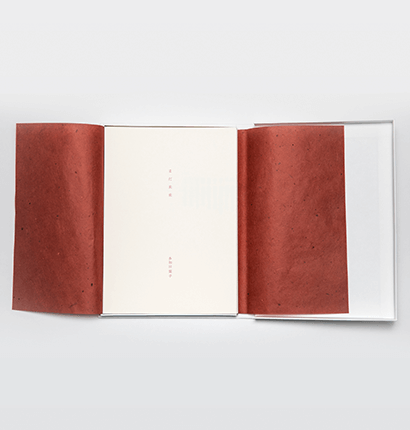 白い紙に活版の黒い文字。多和田さんの詩の言葉には、余計なものは不要ではあるのですが、1色だけ差し色が欲しいと考えて、本文用紙を赤い和紙で包むことにしました。